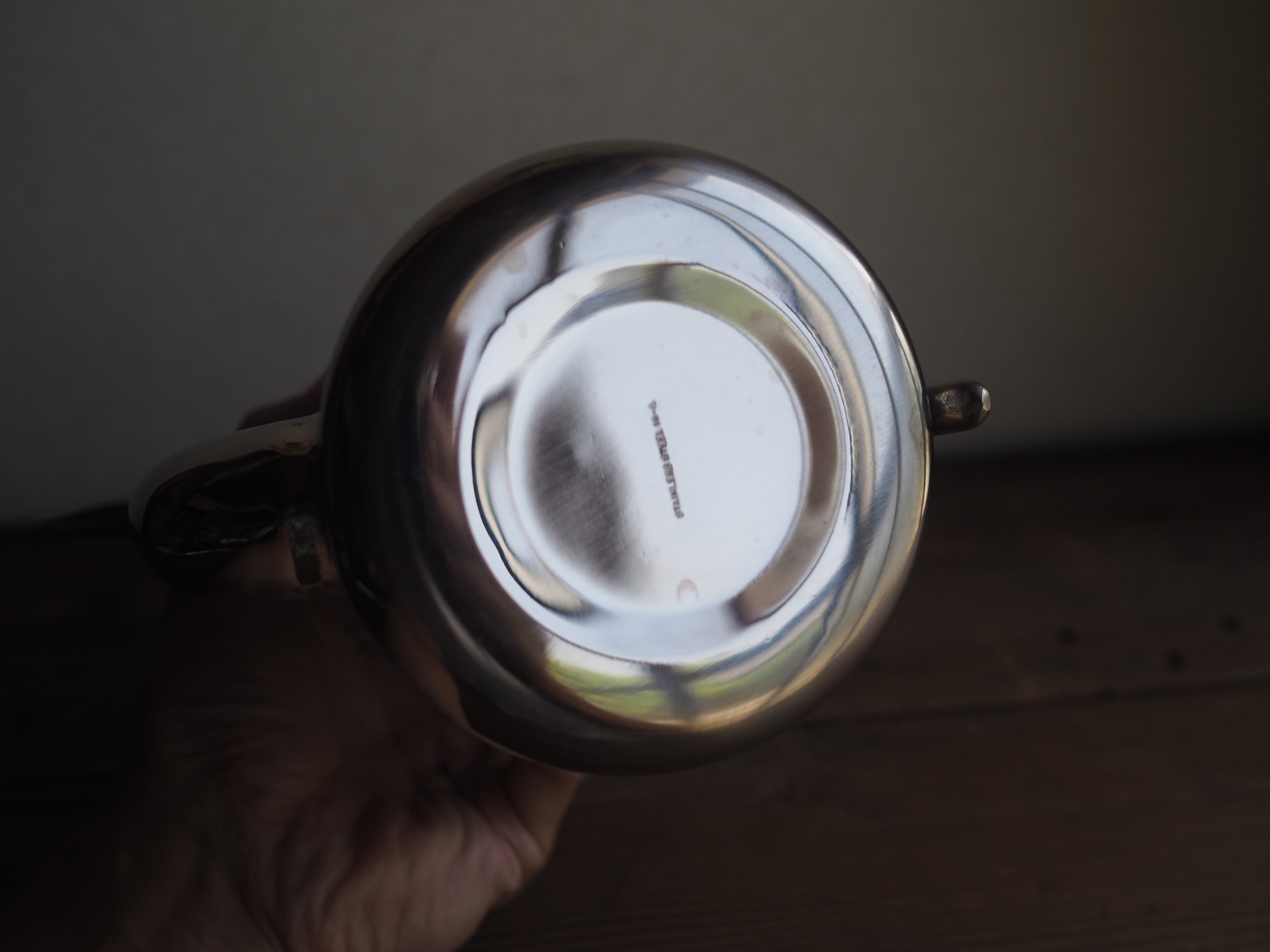 僕がコンコンコンと先細加工を施したステンレスポットです。